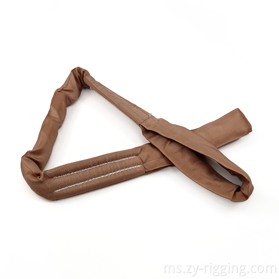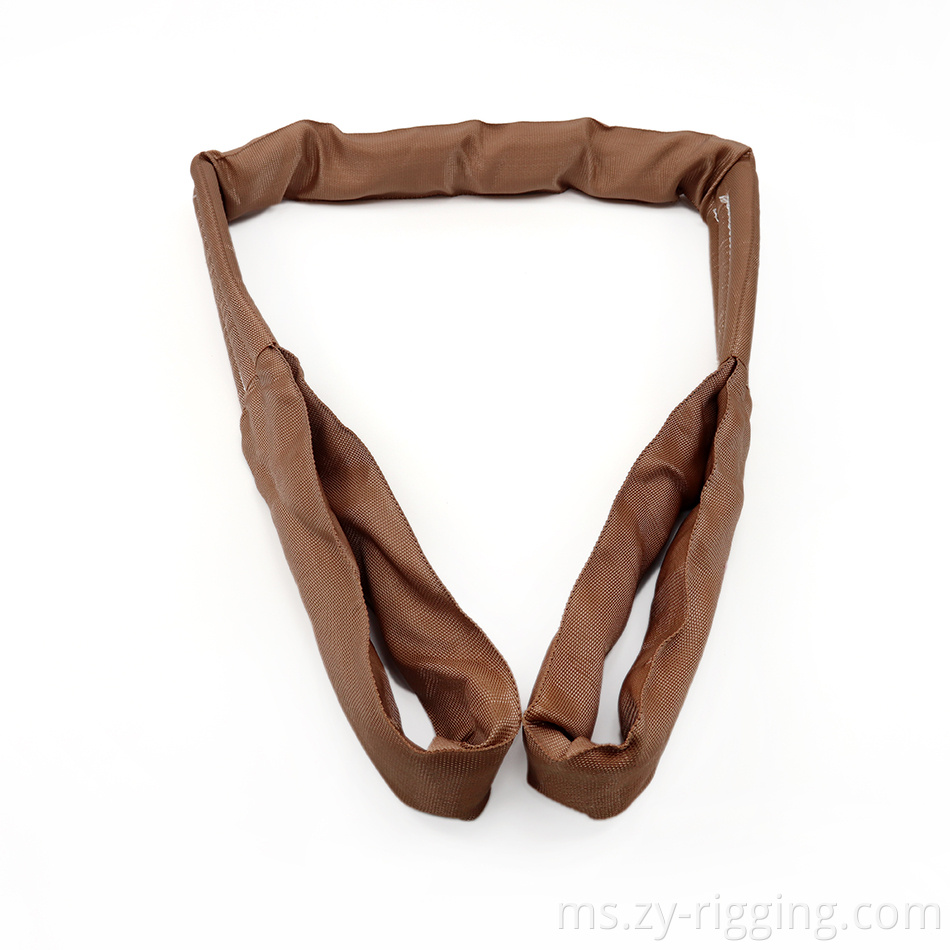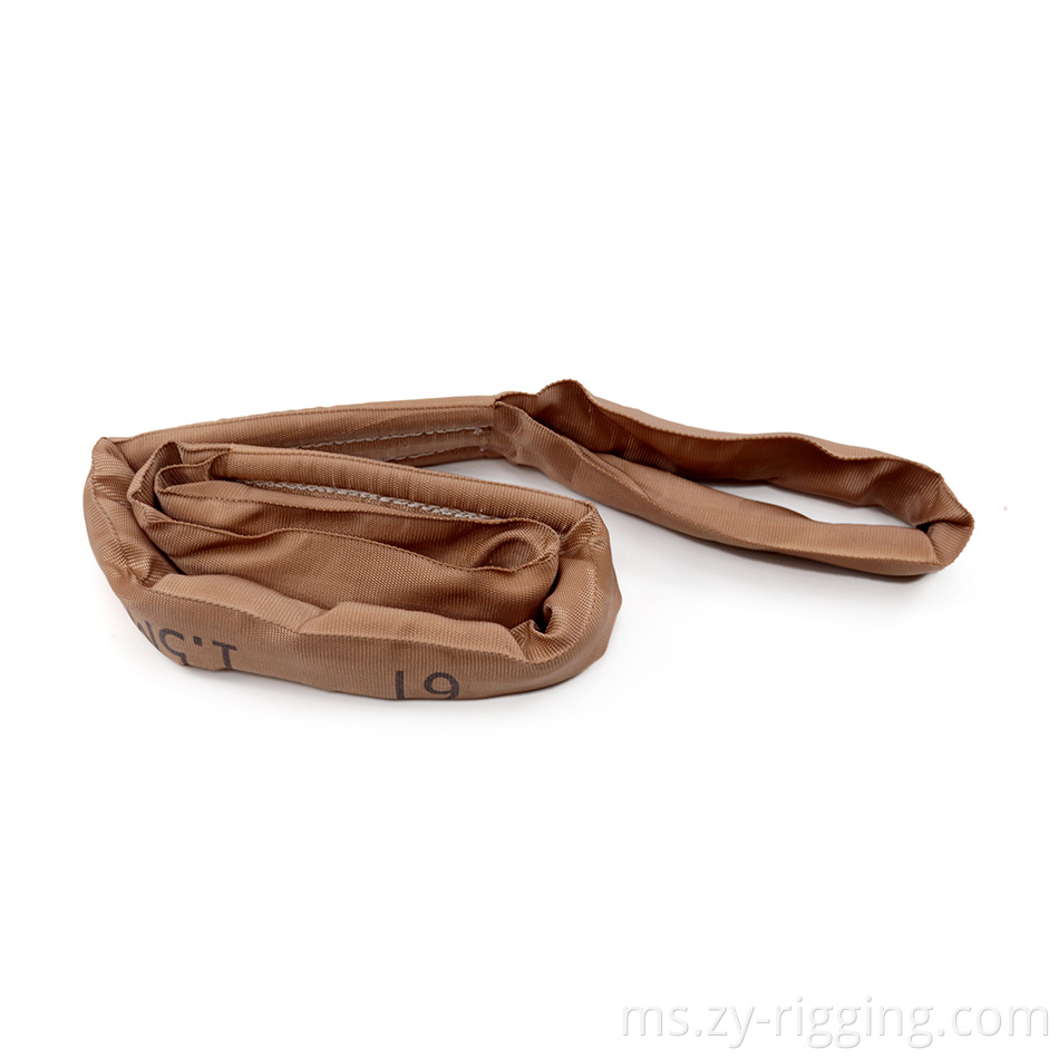 Bahan sling bulat terutamanya serat sintetik poliester (poliester). Lapisan luar sling bulat lembut menggunakan lengan bulat poliester sebagai lapisan pelindung, dan teras dalaman sling bulat yang tidak berkesudahan menggunakan benang teras poliester 100% untuk menanggung beban mengangkat.